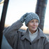 Le modèle LU LA LOOP se compose d’un bonnet chaud et d’une jolie paire de mitaines, tous deux tricotés avec un fil bouclé et associés à un fil de laine classique.