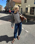 Le Olga Sweater se tricote de haut en bas en jersey avec des rayures. On commence par le dos de l’empiècement, tricoté à plat, en formant la pente des épaules à l’aide de rangs raccourcis et en intégrant les rayures en même temps. Chaque épaule est ensuite tricotée séparément à plat sur une aiguille circulaire, puis les épaules sont jointes pour former le devant de l’empiècement. Le devant et le dos sont ensuite assemblés sous les emmanchures pour former le corps, qui se tricote en rond sur une aiguille circulaire avec des rayures. Les manches sont tricotées vers le bas à partir des mailles relevées autour des emmanchures. Enfin, une bordure d’encolure rabattue est tricotée à partir des mailles relevées le long de l’encolure.