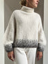 MY WINTER BOHO est un pull court en bouclé doux, doté d’un col montant, de profondes emmanchures raglan et d’un corps ainsi que de manches façonnés, se terminant par un magnifique dégradé de couleurs allant du clair au foncé. Le pull est tricoté de haut en bas.